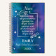 This personalized notebook for a niece features a vibrant blue and purple background with stars, a graduation cap, and diploma details. Customized with her name and graduation year, the inspiring quote adds a motivational touch. Perfect for journaling, planning, or capturing new goals, it is a thoughtful and practical way to celebrate her next chapter.