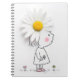 Una encantadora ilustración representa un dibujo lineal de una niña con mejillas sonrosadas, sosteniendo una pequeña flor y llevando una margarita blanca en la cabeza