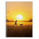 Cuaderno Niño corriendo con perro al atardecer