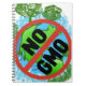 Preocupación global por el ecologista ecologista verde sostenible biología conservacionista biológica importante y consciente del mensaje NO GMO y un globo con América del Norte y la cima de Sudamérica con árboles, aves, pingüinos, olas oceánicas, nalgas y un gran Rótulo rojo NO