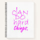 No renuncies a la resistencia perseverante cita de Grit que puedo hacer cosas difíciles para cuaderno. El refrán motivacional para el estímulo y la mentalidad de crecimiento en la tipografía con letras de manos rosas calientes. Empuje aún más con este recordatorio único y motivador para enfrentar sus desafíos. ¡No te rindas! Perfecto para regalar y para volver a la escuela, emprendedores, atletas y todo aquel que quiera alcanzar sueños o metas. Step by Step Inspiration Series disponible exclusivamente en Zazzle en zazzle.com/store/KrisHarty, diseñado por el diseñador internacional Kris Harty. © 2020 Kris Harty Step By Step Inspiration