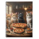En Las Imágenes Se Muestran Cuatro Gatos Sentados Alrededor De Una Mesa Con Una Pizza Preparada Para Comer.
