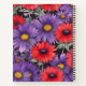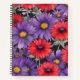 Flores rojas y violetas intensas sobre un fondo negro que resalta su belleza dramática.