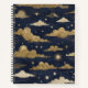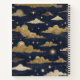 Un patrón de nubes y estrellas doradas que flotan sobre un fondo azul medianoche, creando un contraste celestial y sereno.