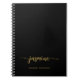 Cuaderno personalizado con monograma de nombre y firma con estilo de letra script femenino minimalista simple y limpio en negro y dorado. Este diseño presenta su primer nombre en una hermosa tipografía de letra manuscrita con cola de cisne, con una plantilla de nombre completo sobre fondo negro y dorado. Estos son fáciles de personalizar y se pueden utilizar como libro de cocina, diario planificador, cuaderno de bocetos, diario y más. También es un regalo femenino elegante para cumpleaños, día de la madre, boda, despedida de soltera, fiesta de cumpleaños de 16 años y baby shower, graduación, negocios, regreso a la escuela, trabajo profesional y para cualquiera que le gusten las cosas simples y limpias.