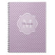 Añada un ambiente moderno sofisticado a su estilo personal con este cuaderno purpúreo claro y blanco de moda del modelo del quatrefoil con un monograma enmarcado elegante. Personalice este diseño elegante añadiendo su inicial conocida y con monograma.