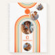 Cuadernos con nombre de monograma boho arco multi foto trendy femenino de mediados de siglo presenta una plantilla de fotos con un collage de cuatro de tus fotos favoritas en un arco bohemio en naranja y azul sobre un fondo blanco con tu nombre personalizado y monograma en una moderna letra naranja. Personaliza editando el texto en los cuadros de texto proporcionados y agregando tus fotos a la plantilla. Perfecto para el trabajo, el hogar o la escuela para cumpleaños, Navidad, Día de la Madre, hermana, mejor amiga y más. CONSEJO DE FOTO: centra tus fotos antes de subirlas a Zazzle. Diseñado por ©Evco Studio www.zazzle.com/store/evcostudio