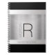 Cuaderno Nombre de monograma DIY, texto gris negro, plata e