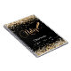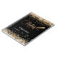 Un fondo negro de moda. Con el texto: Notas y decoradas con una pluma de plumas y un falso purpurina de oro, chispas. Personalizar y agregar un nombre y un texto (o eliminar)