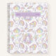 Este adorable cuaderno cuenta con un divertido y caprichoso patrón de niñas, conos de helado, pinceles, leones y plumas en un claro arcoiris pastel. ¡Genial volver a la escuela! Fácil de personalizar para un gran regalo! La parte posterior contiene simples rayas blancas diagonales sobre una púrpura lavanda a juego.