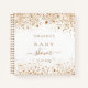 Un fondo blanco y elegante con un polvo purpurina de oro oscuro. Personalice y agregue un nombre y la fecha. Se puede usar como libro de invitados, planear al fiesta o como un favor de partido.
