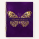 Un elegante fondo violeta decorado con una falsa mariposa dorada. Personaliza y agrega tu nombre.