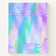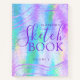 Crea un cuaderno de dibujo único de estilo holográfico iridiscente con ondas violetas. La plantilla permite personalizarla con un nombre personalizado y un número de volumen u otro texto.