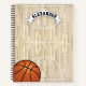 Un cuaderno deportivo personalizado con cancha de baloncesto, baloncesto y nombre para los niños.