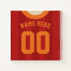 Este diseño es una camiseta de estilo futbolístico / deportivo de color rojo profundo con un collar hinchado por el naranja, puedes arriesgarte al color de fondo de la piel, y también añadir tu propio logo o texto al frente, solo tienes que hacer clic en "PERSONALIZAR". Portátil espiral de 8,5" x 8,5" con cubiertas laminadas, y una selección de estilo de papel, incluyendo cuaderno de bocetos, gobernado, medio gobernado, gráfico. La parte frontal y posterior de los cuadernos tienen diseños de estilo jersey de personalizable, lo que le permite añadir su propio nombre y número de elección al reverso, usar los cuadros a la derecha de la imagen para cambiar el texto. También puede añadir un logotipo o su propio texto al frente, sólo tiene que hacer clic en el PERSONALIZAR. Estos cuadernos son excelentes para bosquejar, hacer listas, conservar recetas, conservar tus estadísticas deportivas, e ideales como de vuelta a los regalos escolares para los estudiantes. Únicos regalos deportivos personalizados personalizados para los aficionados al deporte y los jugadores en su vida!