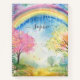 Un cuaderno colorido y bonito para escribir y tener una nota de sus pensamientos felices. La imagen es un arcoiris y un cielo azul con nubes sobre el campo ondulado con árboles y flores rosadas y amarillas bonitos. Anote sus pensamientos felices para ayudar a que su salud mental se mantenga positiva y se dé motivación. Gran libro para niños, adultos jóvenes o adultos mayores. Puede agregar un nombre haciendo clic en el botón de personalización. Cambiar el 'diseño interior de papel' a la derecha de la imagen, elegir entre papel alineado, viñeta, boceto, gráfico, receta, lista de verificación y más.
