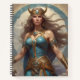 La diosa nórdica irradia poder y majestuosidad con su corona de cuernos y su vestido azul celestial. Un retrato que evoca la fuerza y la mística de la mitología del norte.
