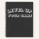 bloc de notas de escritura enlazado en espiral "LEVEL UP TU JUEGO" diseño sencillo y moderno. echa un vistazo a las opciones de página personalizado, puede cambiar de papel alineado a imagen de grafo o edad escolar elemental y escribir páginas de revistas.