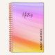 Un portátil sencillo pero elegante presenta un diseño de acuarela color rosa morado Naranja amarillo giratorio. Hacia arriba dice "Notas" y en la parte inferior derecha lo personalizas con tu nombre.