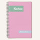 Un cuaderno de notas rosa lindo para chicas con texto que dice "NOTAS" y un personalizado monogramado nombre completo.
