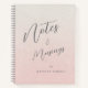 Fondo de acuarela con gradiente rosa suave, con caligrafía moderna en gris claro "Notas y reflexiones" para inspirar tus ideas y pensamientos creativos, personalizado con tu nombre en la parte delantera y tu monograma con nombre en la parte trasera. Agrega tu propia información siguiendo el enlace "Personalizar esta plantilla".