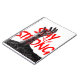 This powerful design shows a hand rising from the darkness with the words Stay Strong in bold red typography.