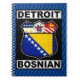 Notepad bosnio-estadounidense de Detroit. Escudo clásico de diseño de carreteras, con el texto Detroit Bosnian y las banderas de la ciudad de Detroit y Bosnia y Herzegovina.