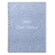 Cuaderno mostrado con un gráfico de estrellas petite de color gris plateado sobre un fondo azul polvoriento claro con los textos de "Olivia" y "Bride Notebook" rodeado por un oval con bordes de colores coordinados. Personalizar este artículo y cambia el nombre al tuyo o quita el nombre y compra como está. Colores blancos, plateados y azules.