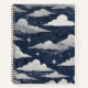 Un cielo azul medianoche adornado con nubes etéreas y estrellas plateadas que brillan con suavidad.