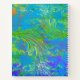 Patrón de resumen verde vibrante en un fondo azul claro.