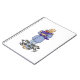 Un diario o cuaderno para padres nuevos que presenta un divertido ilustracion de portada de un padre con un bebé llorando parado en un parche de flores.