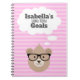 Ilustracion de un lindo oso de peluche con gafas con burbujas de pensamiento y texto personalizado.