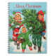 Feliz Bloc de notas de Navidad con una brillante y colorida imagen vintage de Navidad que recuerda a uno de sus jóvenes mientras vemos a niños felices y alegres llevándose el árbol de Navidad de vuelta a casa después de cortarlo en el bosque.
