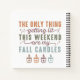 Este humorístico y acogedor diseño de otoño presenta la ingeniosa frase "Lo único que se enciende este fin de semana son mis velas de otoño" en una mezcla de letras atrevidas y elegantes. El texto está organizado creativamente con diferentes tamaños de letra y estilos, añadiendo interés visual y un tono lúdico. La paleta de colores incluye cálidos tonos otoñales como naranja quemado, verduras de tierra y suaves browns, que evocan el calor y el confort de la temporada.