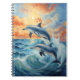 Cuaderno Océano atardecer artístico de dos delfines saltand