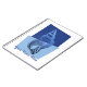 Portátil personalizado en una impresión de estilo boho, moderno, minimalista, de mediados de siglo de una concha de turbante en un gradiente azul oceánico contra formas geométricas de azul oscuro y azul claro