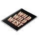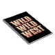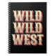 Diseño de texto retro estilo grunge "Oeste salvaje Oeste" con letras rayadas en colores amarillo, rojo y beige