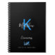 Fondo negro, texto blanco y azul. Decorada con un pequeño diagrama de economía azul. Personalice y agregue su monograma inicial, nombre y texto. El nombre está escrito con una escritura a mano a la moda. Perfecto para su oficina en casa o trabajo escolar,