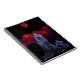 Un cuaderno estético de espiral gótica con ilustraciones digitales de un lobo rodeado de cristales con una luna roja de sangre colgando en el cielo detrás. Los cristales de las obras de arte son granate y amatista. Arte digital diseñado con cariño por mí 🖤