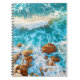 Cuaderno Olas en una playa rocosa al atardecer. Playa aérea