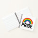 Este diseño presenta la palabra orgullo bajo un arcoiris colorido.