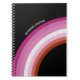 Hermoso regalo para lesbianas con los colores de la bandera lesbiana bonito en forma de arcoiris rosa y rojo. Orgullosa mujer gay monogramando cuaderno.