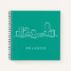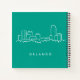 Este diseño presenta un esbozo a mano del perfil de Orlando sobre un fondo turquesa.