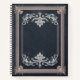 Elevate your writing with this elegant customizable notebook, featuring a deep charcoal backdrop framed by intricate vintage flourishes. The refined border design evokes classic bookbinding and timeless stationery, making it ideal for personalization with a name, title, or meaningful phrase. Perfect for journaling, planning, note-taking, or gifting, this notebook blends old-world sophistication with modern versatility—designed to feel both personal and enduring.