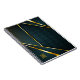 Un cuaderno abstracto de estilo lujoso fresco que presenta un diseño geométrico azul y dorado. Personalice con su monograma personalizado.