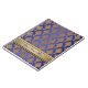 Diseño del damasco del peck de Linda Baysinger, con color oro en azul real profundo, con un aspecto brillante. Apenas añada su propio texto, en la banda del color oro, para personalizar.