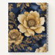 Un patrón de grandes flores doradas que brillan intensamente sobre un fondo azul medianoche, creando un diseño majestuoso y celestial.