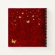 Crea tus propios libros de invitados rústicos y frescos usando una plantilla sencilla DIY en tonos dorados y rojos. Personalice estos elegantes libros de fotos para un rústico membrillo de ranchera, fiesta de 16 años de la princesa española, bodas de rosas rojas, una ducha de bebé con flores para un chica, una ducha de novia u otro evento especial... El singular arte floral de Raphaela Wilson cuenta con una falsa corona metálica de oro / tiara, mariposas de confeti purpurina brillante, una vieja textura de papel pergamino vintage de pergamino de época y rosas de acuarela roja oscura. Añada una foto (como una imagen de glam Mis Quince Años o de compromiso) a la imagen de marcador de posición, y siéntase libre de guardar o alterar la escritura caligráfica y el estilo moderno de la tipografía. Si usted está celebrando un tradicional membrillo mexicano, estos hermosos y lujosos cuadernos en espiral de color rojo pueden complementar su gran día. Las páginas tienen mucho espacio para que los huéspedes escriban buenos deseos, fotos de garabatos y dejen comentarios. Crea tu propio diseño y disfruta! Categoría: elegantes libros de invitados con foto; libros de bodas de espiral de mariposa floral; y libros de invitados de quinceanera de rosas rojas con mariposas. Colores temáticos fiestas rojos y dorados de la quinceañera: rojo oscuro, borgoña, marrón sangriento, marsala, oro amarillo champán, marrón claro, tostado y negro.
