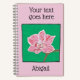 Puede personalizar este bloc de notas rosa bonito con un título y su nombre. Está decorada de frente y de atrás con un dibujo de una sola flor de orquídea rosa sobre un fondo verde. Puede utilizar su propio texto en la parte delantera, por lo que el bloc de notas es adecuado para cualquier uso. También se puede elegir el tipo de papel que hay dentro (alineado, liso, etc.). La obra es original y sólo está disponible en The Art of Being Beth.
