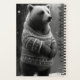 El oso adorable lleva un suéter acogedor, situado en un bosque de invierno. La imagen, cálida y acogedora, evoca sentimientos de confort y relajación. El diseño caprichoso te hará sonreír y es ideal para los amantes de los animales y para los amantes de la belleza de la naturaleza.